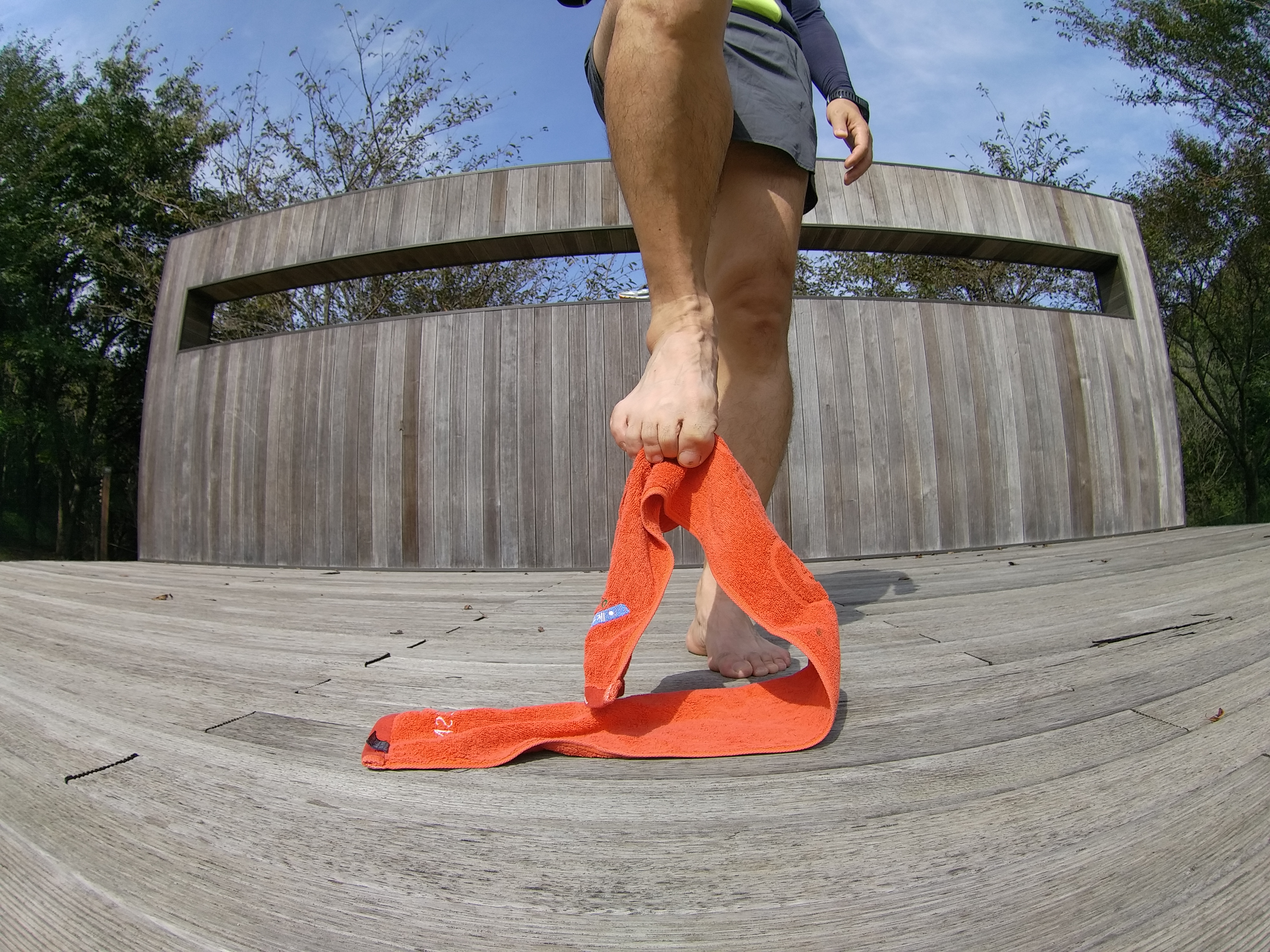 족저근막염 등에 효과가 좋다는 발가락으로 수건 집기와 같은 스트레칭도 이동 중에 할 수 있습니다. 발가락을 움켜진채 걷다 풀고 걷는 것을 반복하면 특별한 시간을 내지 않고도 좋은 효과를 볼 수 있습니다.