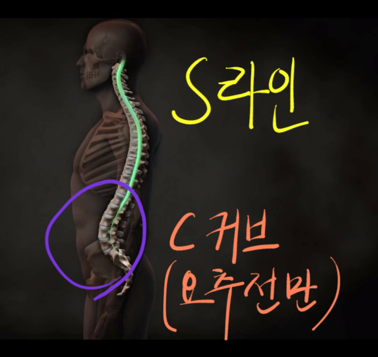 바른 자세는 척추의 S라인을 잘 유지하고 요추의 C커브를 잘 유지하는 자세입니다.