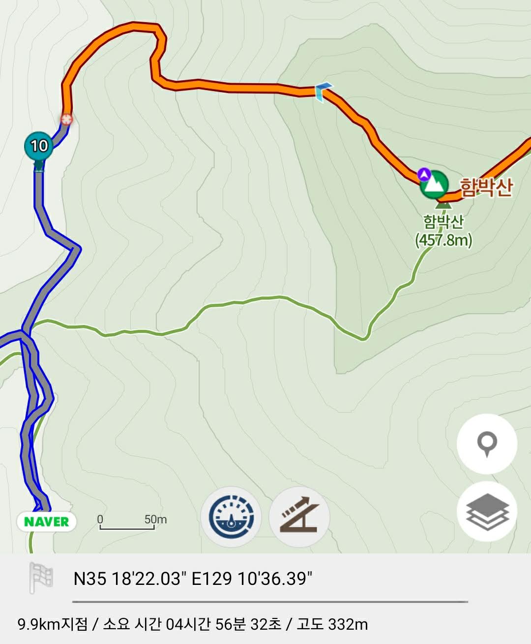 이동 거리는 500m, 고도차는 156m, 이동 시간은 7분 9초 입니다. 경사가 상당히 가파른 곳입니다. 더군다나 전날의 비로 매우 미끄러운 상태이기도 했습니다.(얼마나 미끄러웠냐면 비록 제가 영상을 찍느라 휴대폰을 오른손에 든채로 내려갔지만 이끄러움에 두 번 정도 속도를 늦추어 놓치기도 했고 한 번은 살짝 미끄러지기도 했습니다. 미끄러졌을 때의 팁을 말씀드리면 그대로 멈추면서 무게 중심을 낮추고 넘어가는 반대 방향으로 무게 중심을 살짝 옮기는 것이 도움이 됩니다.)