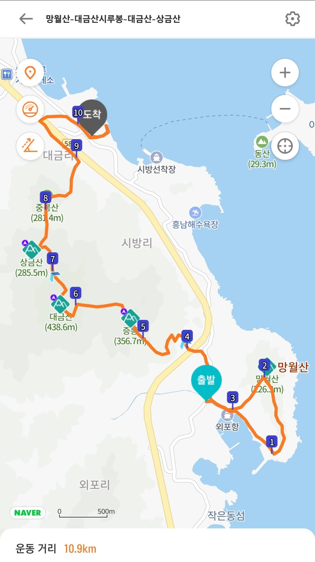 오늘 원래 산행 계획은 대금산을 오른 후 외포로 원점회귀하는 것이었습니다만 매미성을 보는 것이 어떻겠냐는 의견에 따라 코스를 변경하여 진행하였습니다.