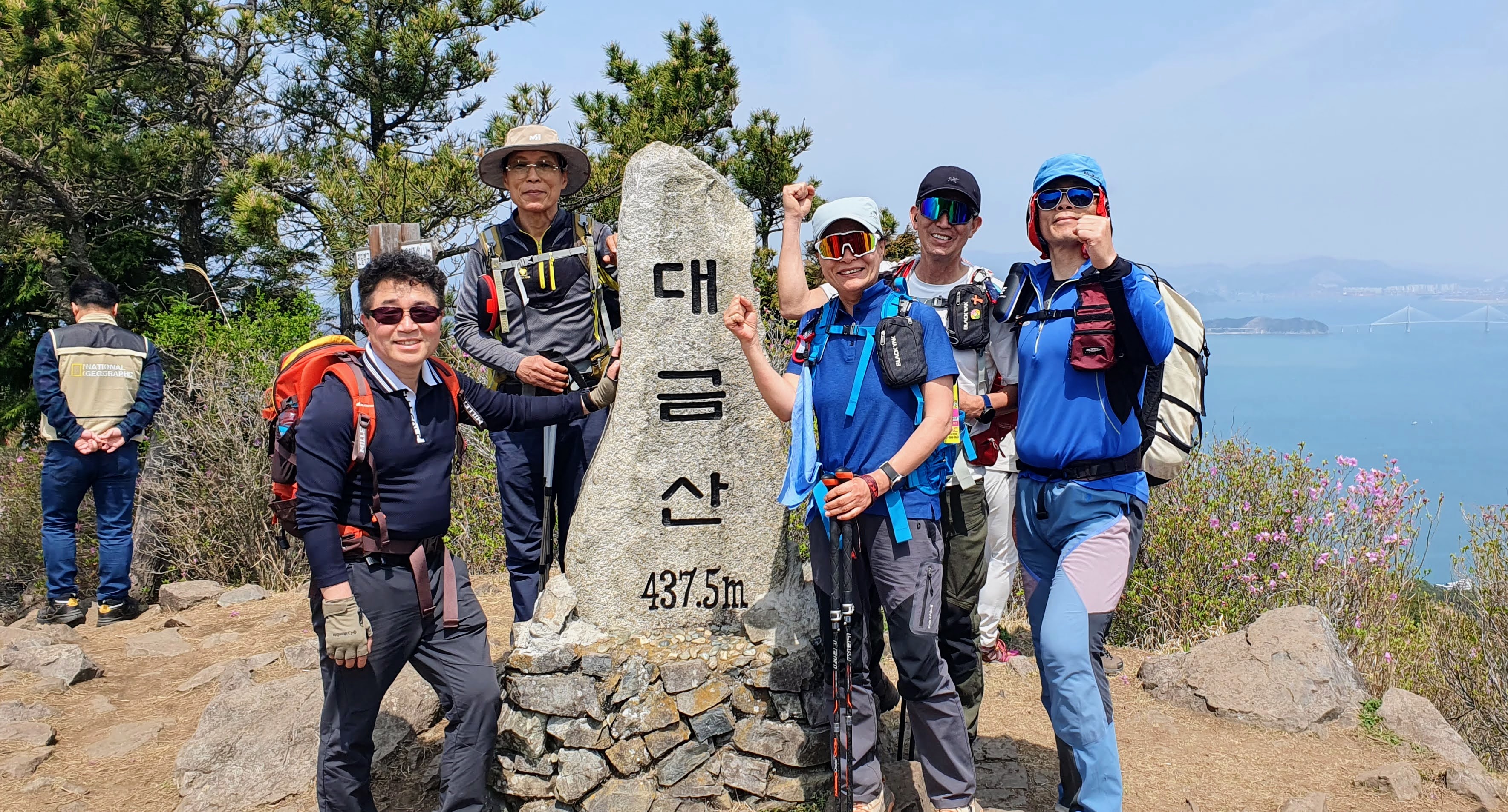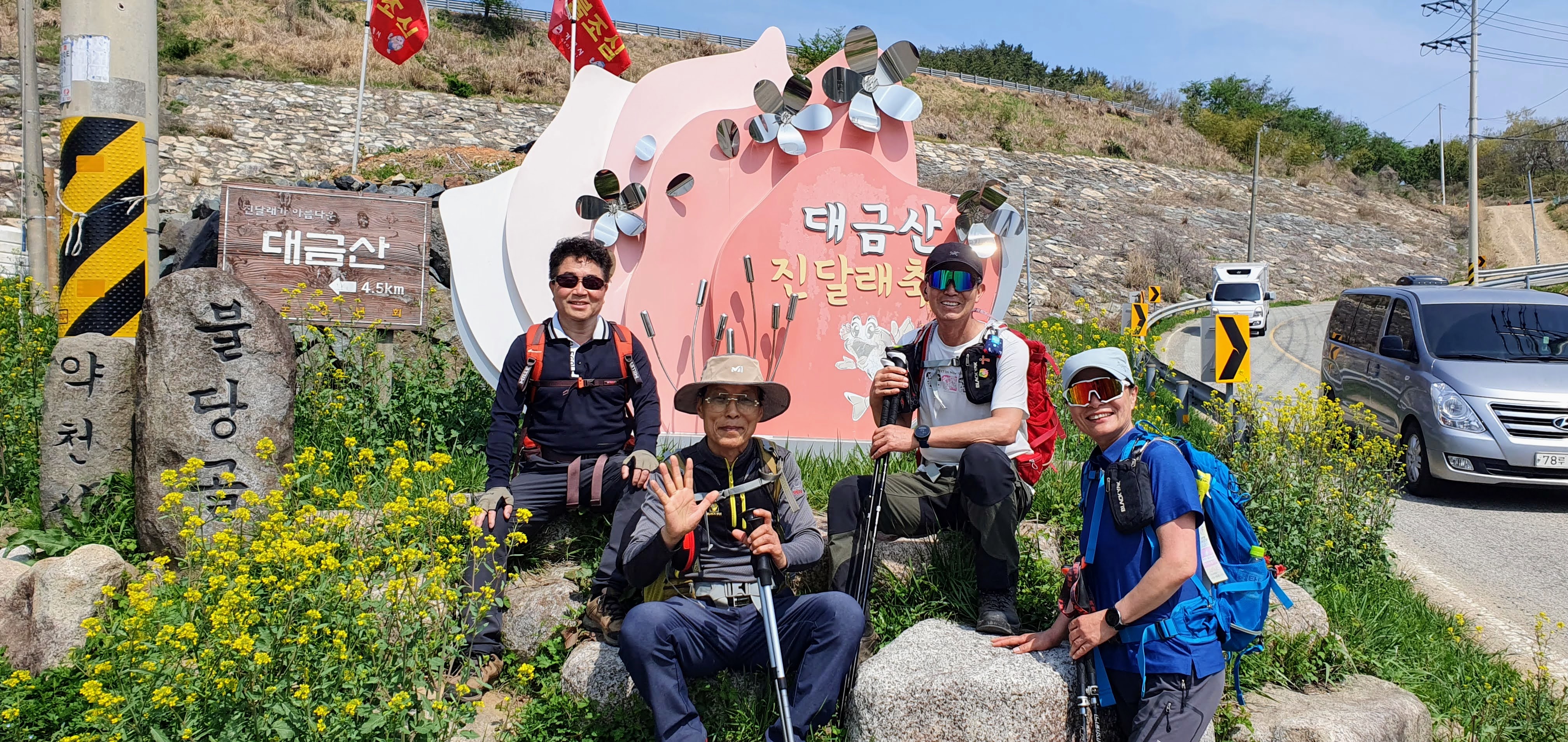 오늘은 등산바이블 카페의 두 번째 공개산행으로 진달래 만발 할 것으로 기대했던 그러나 이젠 너무 늦었던 대금산을 다녀왔습니다.(얼마 전 만개했던 벚꽃은 벌써 바람에 날려 가지를 드러내고...)
