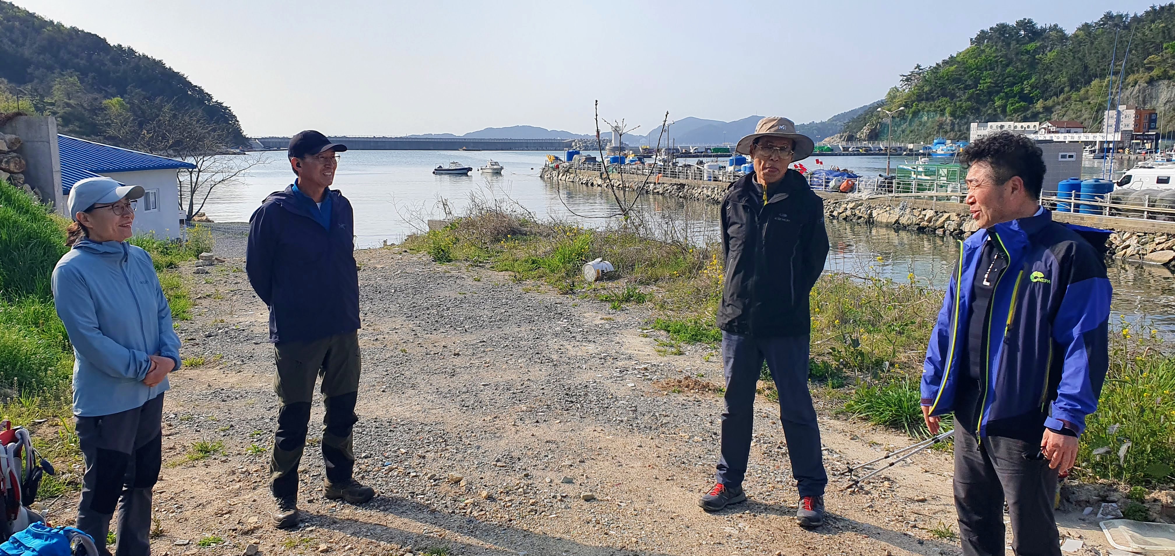오늘 공개산행은 하단역에서 만나 같이 버스를 타고 이동한 각시붕어님 내외분과 2019년, 2020년 등산바이블 밴드에서 공개강좌, 공개산행에 여러 번 참석하셨던 창원에서 오신 걷다가님과 오래 전부터 등산바이블 밴드에서 글과 영상은 계속 보셨고 공개산행에 참석하려고 했으나 시간이 잘 맞지 않아 이번에서야 멀리 진주에서 오신 유현봉님 그리고 저까지 모두 다섯 명이 외포초등학교에서 만나 함께 하였습니다.