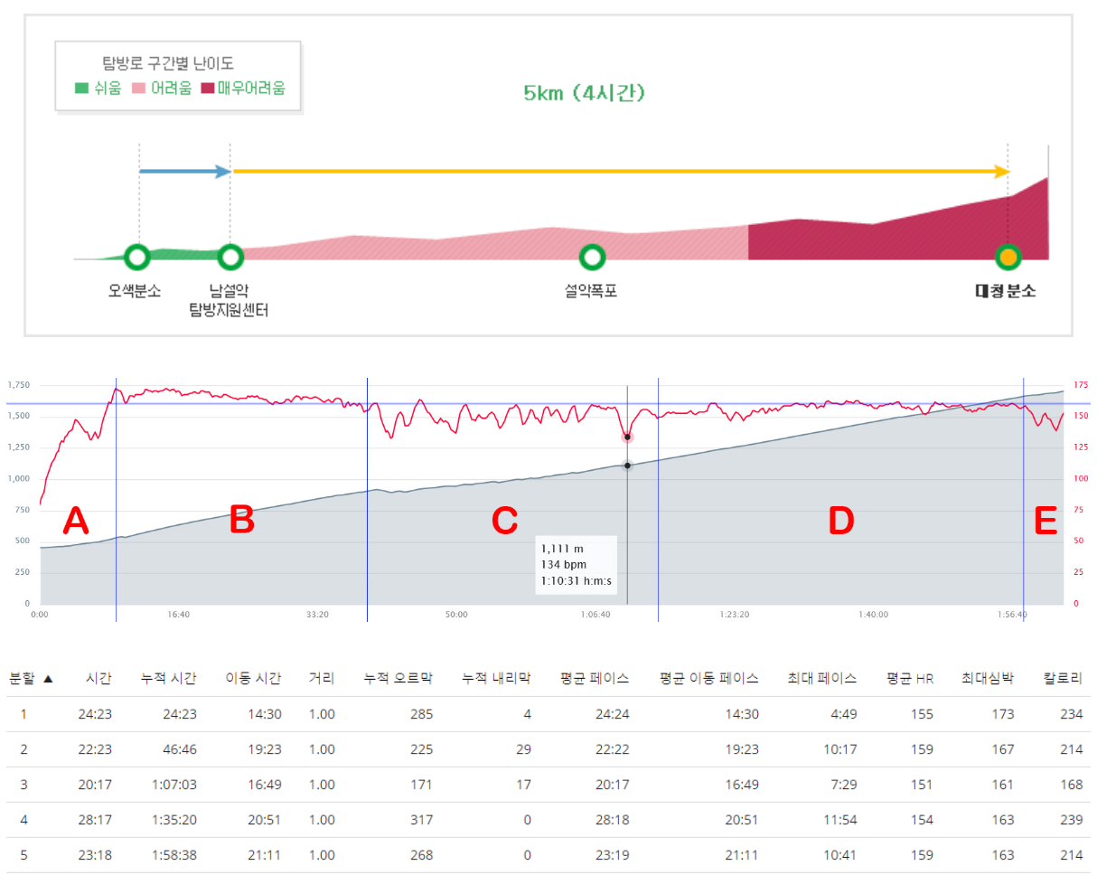 부산의 대표 종주 산행인 금백종주(26km)도 그렇고 일주일에 서너번씩은 다니는 동네산인 시약산(12km)도 그렇고 설악산의 대표적인 오르막 코스인 오색-대청 구간(오르막 5km)도 그렇습니다.