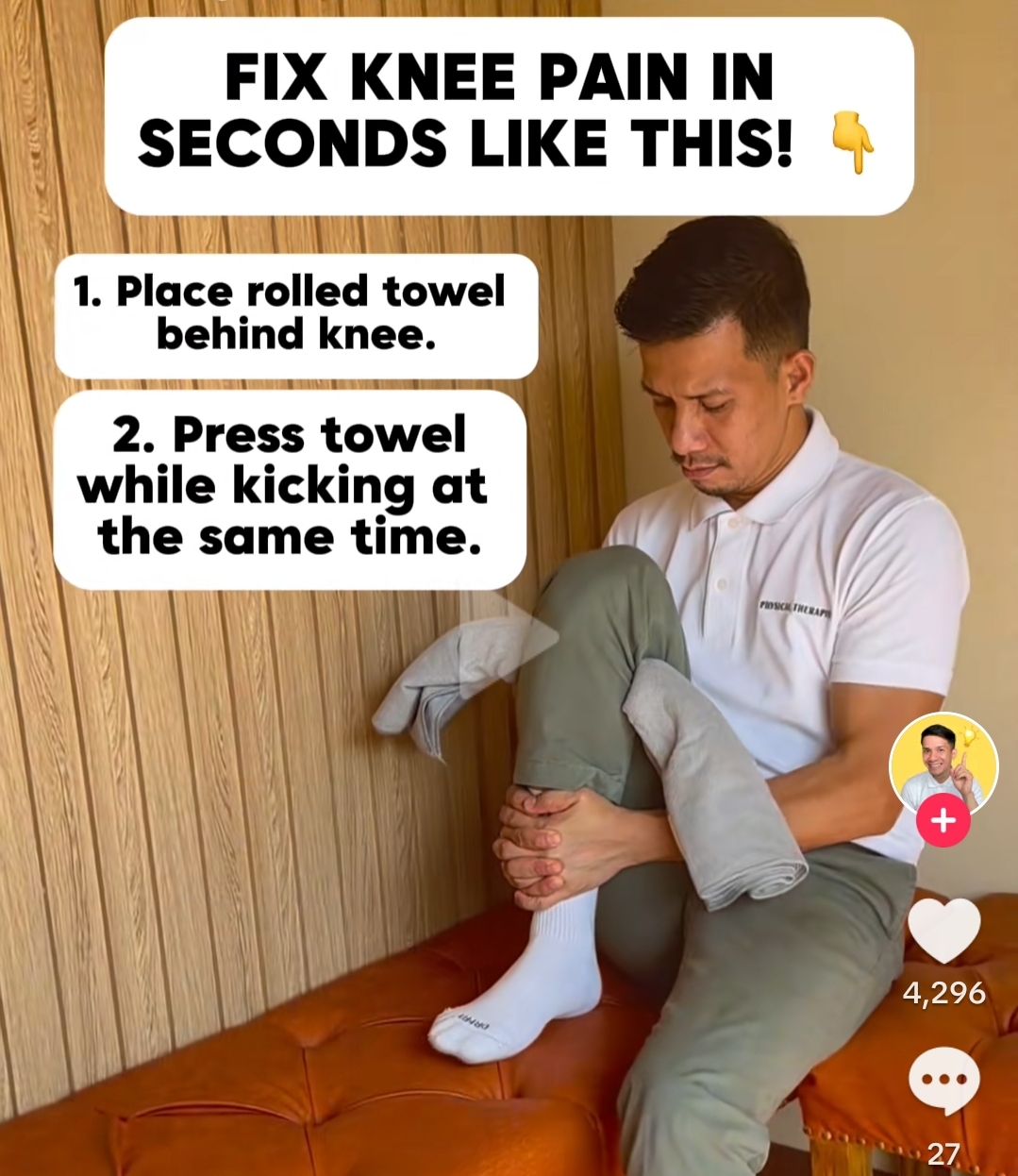 이 스트레칭이 모든 무릎 통증에 효과적일리는 없겠지만 갑자기 강한 통증을 느낀다면 꼭 기억해 두었다가 해보세요.