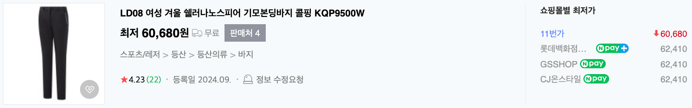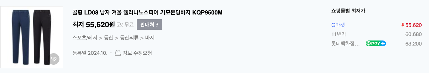 지난 번에는 여름용 바지를 소개해 드렸었는데 이번에는 기모와 조금 두께감이 있는 겨울용 바지입니다.