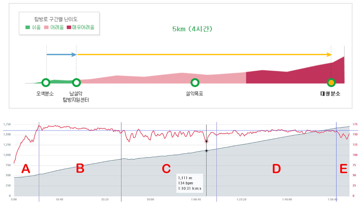 영상에서 확인하셨다시피 앞서 말씀드린 내용을 잘 따르면 그 힘들다고 소문난 설악산 오색에서 대청봉 5km의 오르막도 쉬지 않고 빠르게 올라갈 수 있습니다!